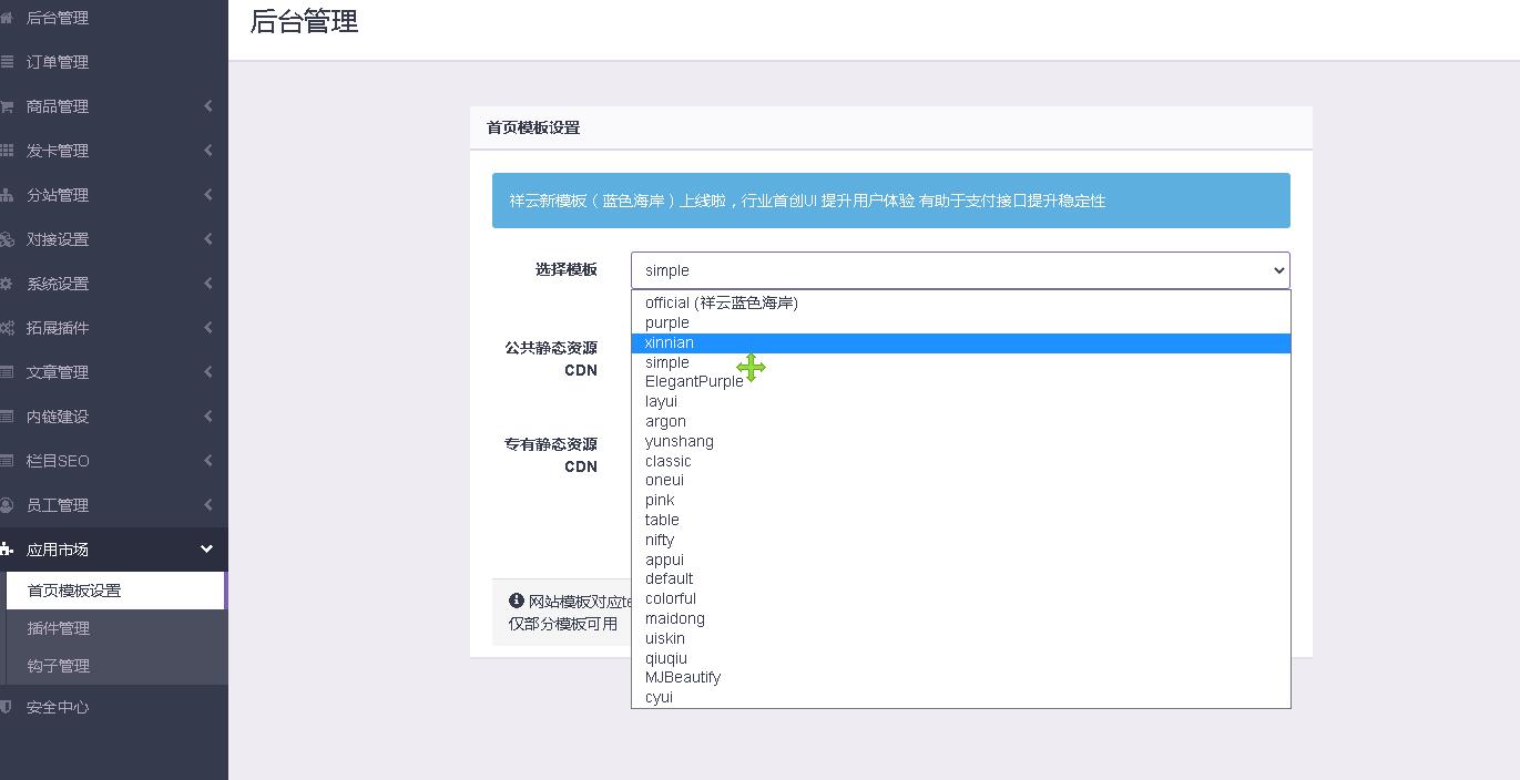 新版的发卡,系统,和彩虹商城差不多,,可以建立分站,这个能直接对接易支付接口,不需要绕,